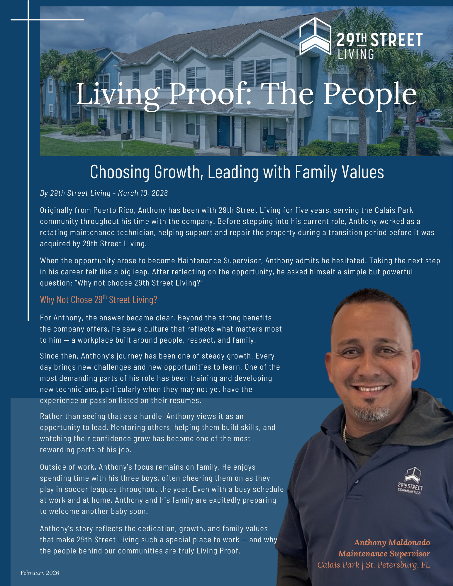 29th Street Capital strives to make positive economic, social, and environmental changes for the local community and real estate markets. At 29th Street Capital, our team of professionals are driven by and follow our strengths bringing the market a multifamily industry-leading company.