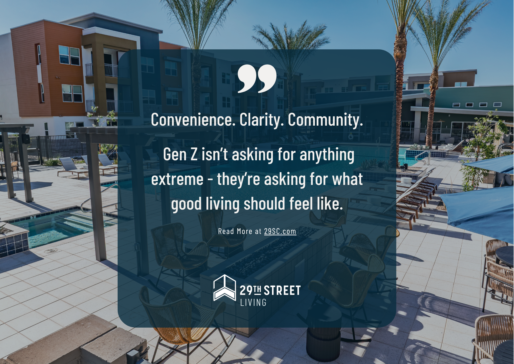 At 29th Street Living, we pride ourselves on being deeply operational, technology-forward, and resident-focused. So, when we look at Gen Z, we don’t respond with trend forecasting or marketing gimmicks. We respond with execution, and we build systems that serve them and elevate the resident experience for everyone else.